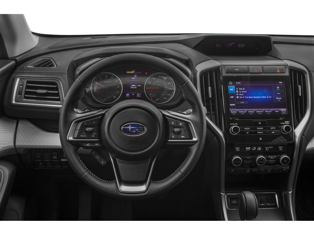 - Radio: Subaru STARLINK 8.0" Multimedia Plus System -inc: AM/FM stereo HD Radio w/single disc CD player, MP3/WMA/CRR/RW file capability, multi-touch gesture high resolution LCD display screen, voice activated controls, Bluetooth® audio streaming connectivity, Bluetooth® hands-free phone connectivity, Bluetooth® hands-free SMS text messaging connectivity (applicable w/compatible cell phone), Near Field Communication (NFC), iPod control capability, SiriusXM All Access radio (subscription required), SiriusXM Travel Link (subscription required), smartphone integration for Aha, Android Auto, CarPlay and Pandora, STARLINK cloud applications, steering wheel controls for audio and Bluetooth®, 6 speakers, 3.5mm auxiliary input jack and front and rear dual USB ports