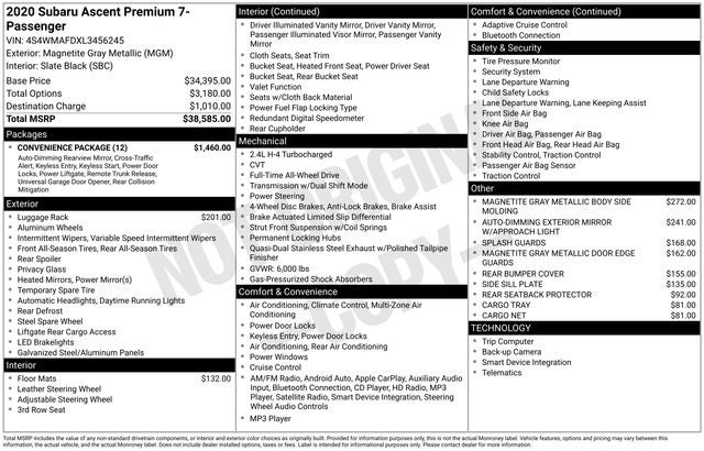 Whether you're embarking on a family adventure or simply seeking a versatile and well-equipped SUV, this 2020 Subaru Ascent Premium is a remarkable choice. Experience the perfect blend of capability, comfort, and convenience – schedule a test drive today and discover the difference for yourself.