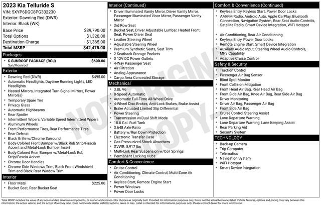 This 2023 Kia Telluride S is a remarkable SUV that combines exceptional performance, advanced technology, and unparalleled comfort. With its striking Dawning Red exterior and premium features, this Telluride is the perfect choice for the discerning driver seeking a versatile and sophisticated vehicle.