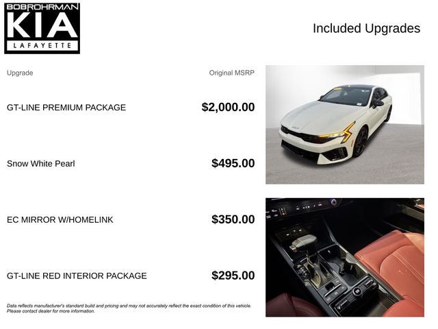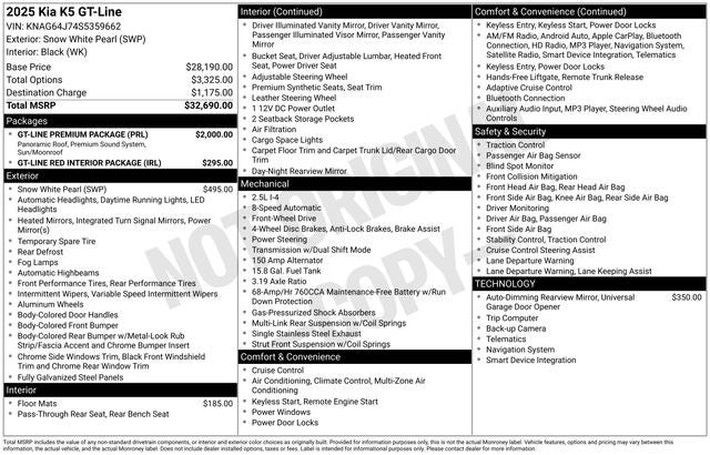 Don't miss your opportunity to experience the ultimate in driving pleasure. Visit our showroom today and let us put you behind the wheel of this remarkable 2025 Kia K5 GT-Line. We're confident that once you take it for a test drive, you'll be convinced that this is the perfect vehicle for you.